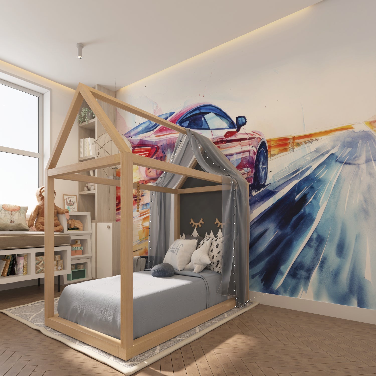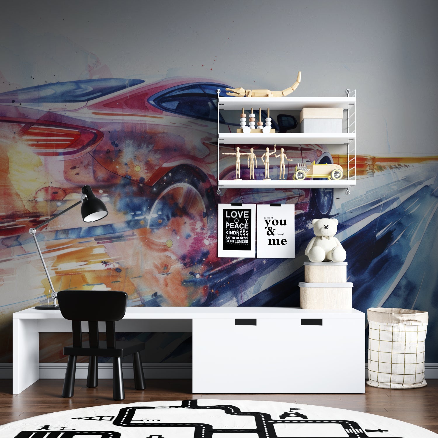 Unsere Rennwagen-Tapete erweckt Räume sofort zum Leben.