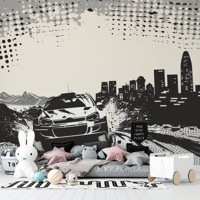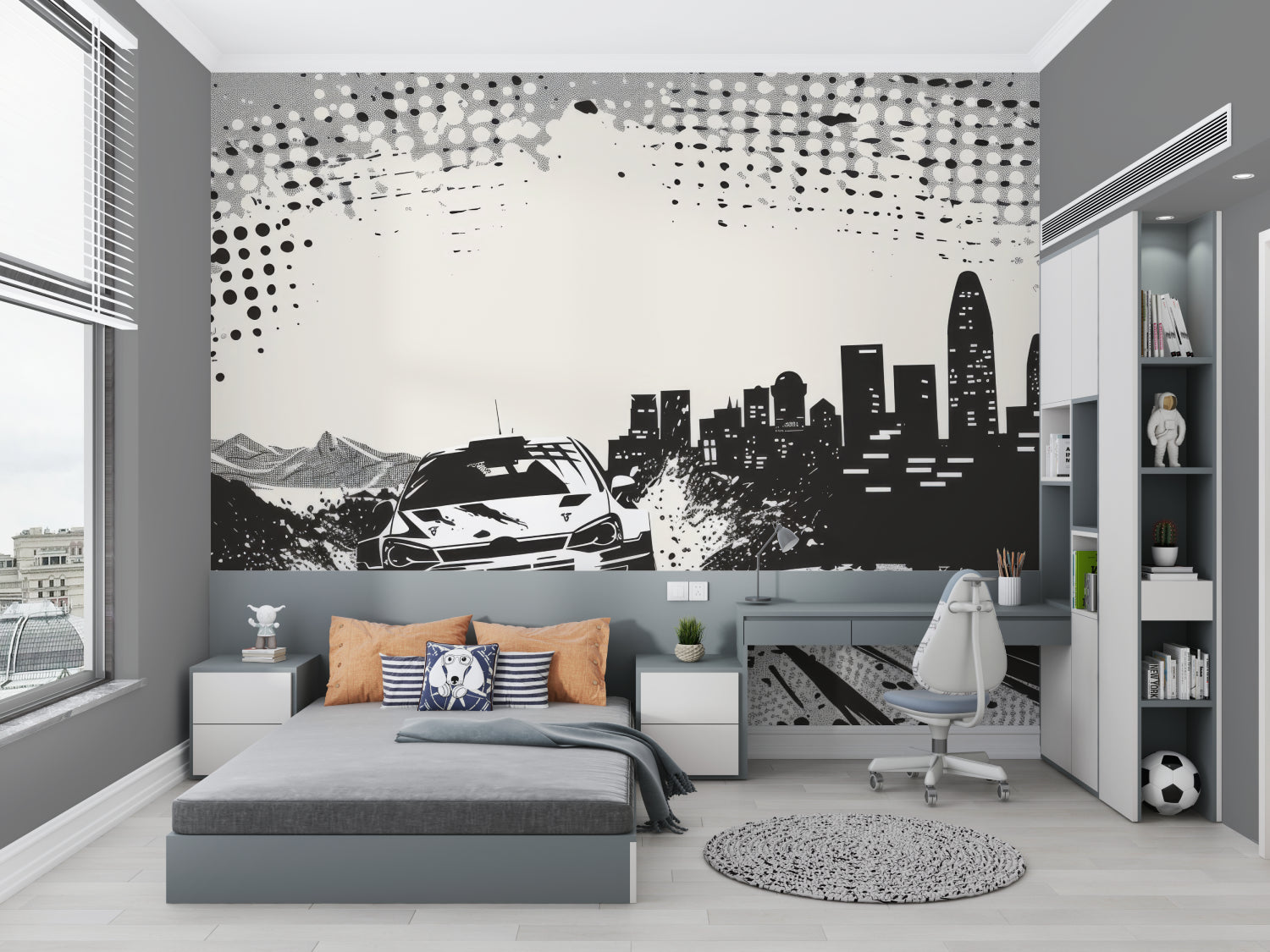 Verwandeln Sie jeden Raum in ein energetisches Refugium mit dieser schwarz-weißen Auto-Wandmalerei. Die moderne Ästhetik macht sie besonders geeignet für Jugendzimmer oder Gaming-Bereiche, wo die urbanen Renn-Tapete eine Atmosphäre von Geschwindigkeit und Spannung schafft. Die anspruchsvolle monochrome Farbpalette sorgt für Vielseitigkeit und bewahrt gleichzeitig ihre kühne, zeitgenössische Ausstrahlung.
