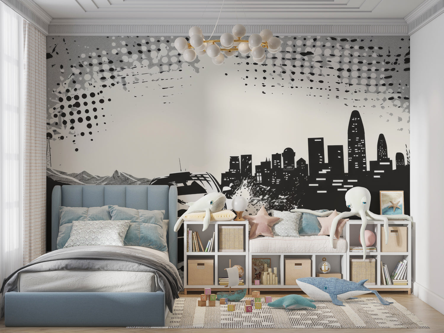 Diese Rennwagen-Tapete fängt die rohe Energie des urbanen Motorsports mit einem auffälligen monochromen Design ein. Die dynamische Komposition zeigt eine markante Silhouette eines Rallyeautos vor einem minimalistischen Stadtbild-Hintergrund und schafft eine kraftvolle visuelle Erzählung. Gepunktete Muster fallen von oben herab, während die urbanen Sporttapete dramatische Spritzer und Bewegungseffekte zeigt, die die Szene zum Leben erwecken.