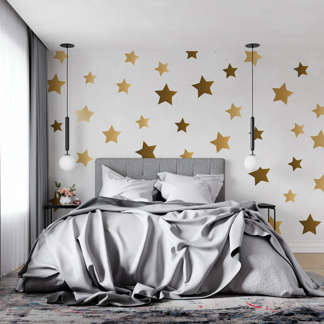 Diese goldene Stern-Tapete bringt Wärme und Wunder an Ihre Wände.