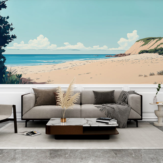 Unser Küstenlandschafts-Mural bringt den Strand direkt an Ihre Wände.