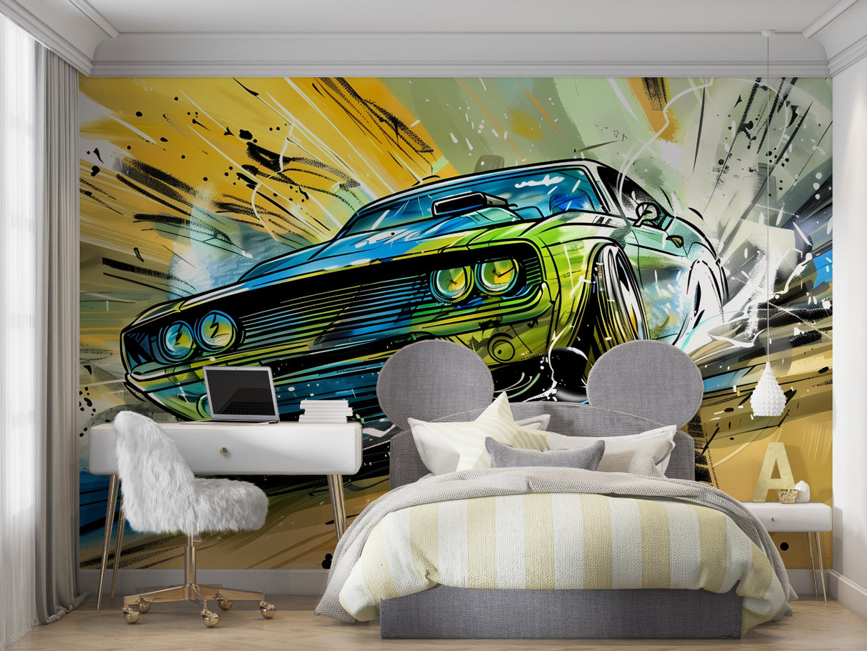 Street Art Tapete | Dynamisches Rennwagen-Design