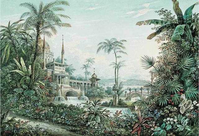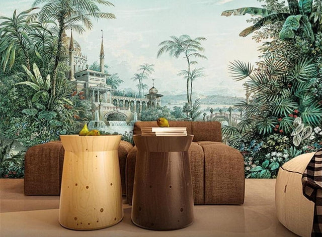 Die Kombination aus tropischen und urbanen Elementen schafft ein aufregendes modernes Wanddesign.