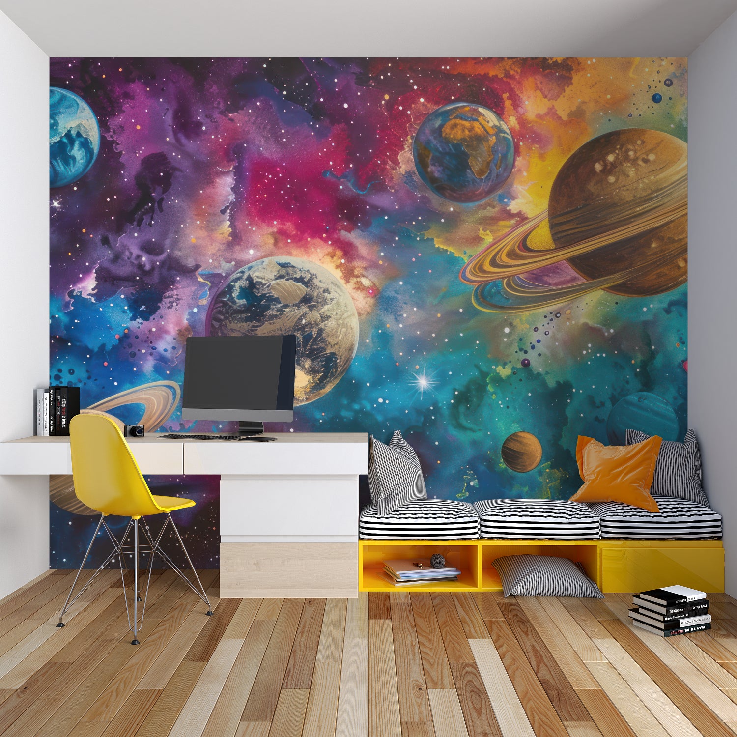 Verwandeln Sie jeden Raum in eine zeitgenössische urbane Galerie mit diesem modernen Graffiti-Mural. Perfekt, um eine energiegeladene Atmosphäre in Jugendzimmern oder kreativen Räumen zu schaffen, verleiht diese abstrakte Street-Art-Tapete Persönlichkeit und künstlerischen Flair. Die kräftige Farbpalette und die dynamischen Designelemente arbeiten zusammen, um eine Statement-Wand zu schaffen, die Kreativität anregt und moderne urbane Kultur ins Innere bringt.