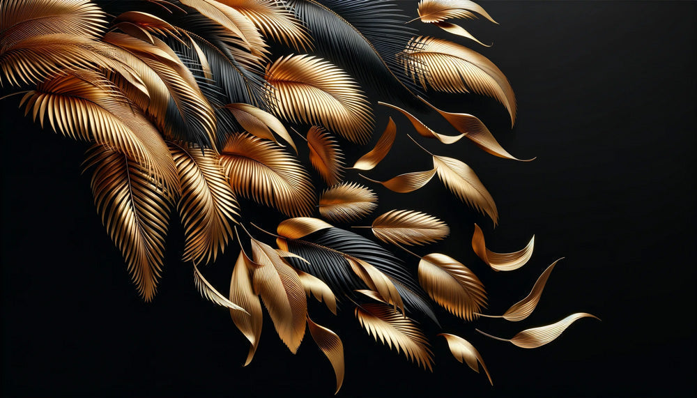 Luxuriöses Wandbild mit goldenen Palmenblättern