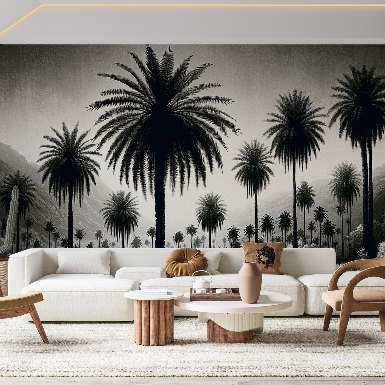 Verwandeln Sie Ihren Raum mit dieser tropischen Landschaftstapete, die jedem Interieur eine anspruchsvolle Dramatik verleiht. Das Palmenhain-Wandbild schafft eine Atmosphäre zeitloser Eleganz, perfekt für moderne Wohnräume, gehobene Gastbereiche oder kreative Arbeitsplätze. Die monochromatische Farbpalette sorgt für vielseitige Stylingmöglichkeiten und bewahrt dabei eine kraftvolle visuelle Wirkung, die Aufmerksamkeit erregt, ohne den Raum zu überwältigen.