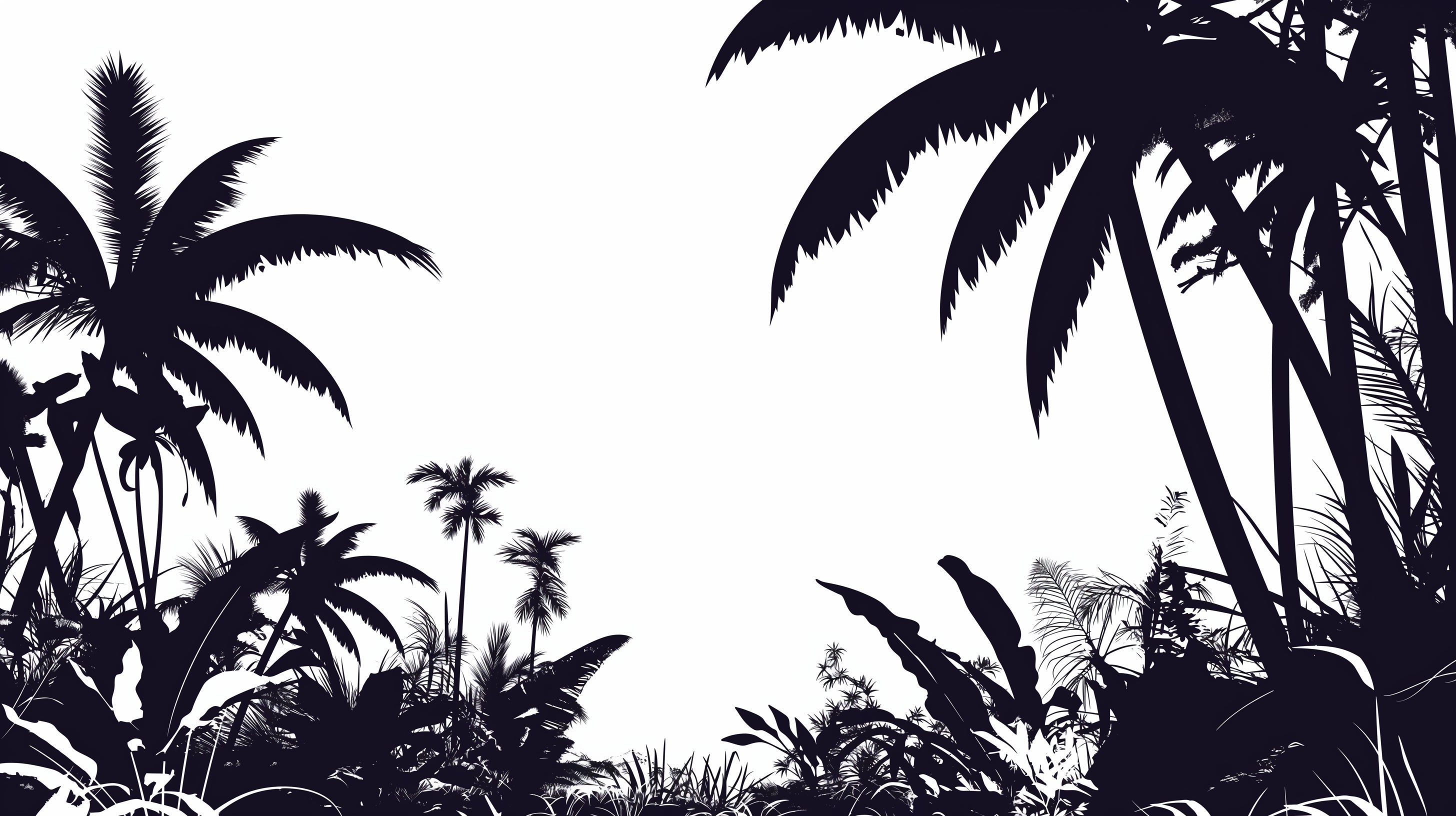 Verwandeln Sie Ihren Raum in ein elegantes tropisches Refugium mit dieser schwarz-weißen Waldtapete. Das großformatige Design verleiht jedem Raum Tiefe und Dimension und bewahrt dabei eine raffinierte Ästhetik, die moderne, zeitgenössische oder minimalistische Einrichtung ergänzt. Dieses Palmenwandbild schafft ein immersives Erlebnis, das die Ruhe einer tropischen Landschaft in Ihr Interieur bringt, perfekt für alle, die eine kühne und dennoch anspruchsvolle natürliche Atmosphäre suchen.