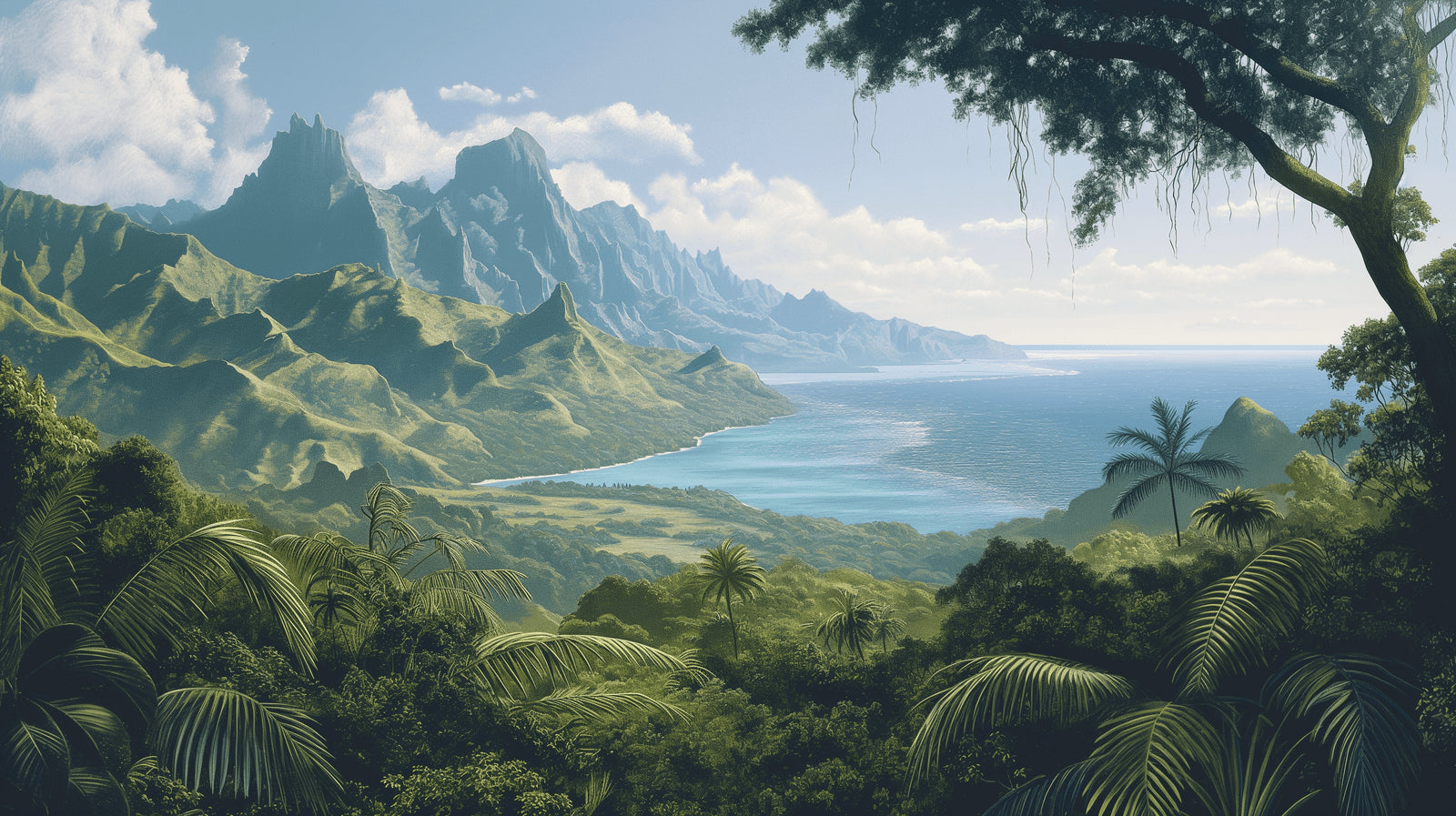 Unsere tropische Berg-Tapete bringt das Paradies nach Hause.