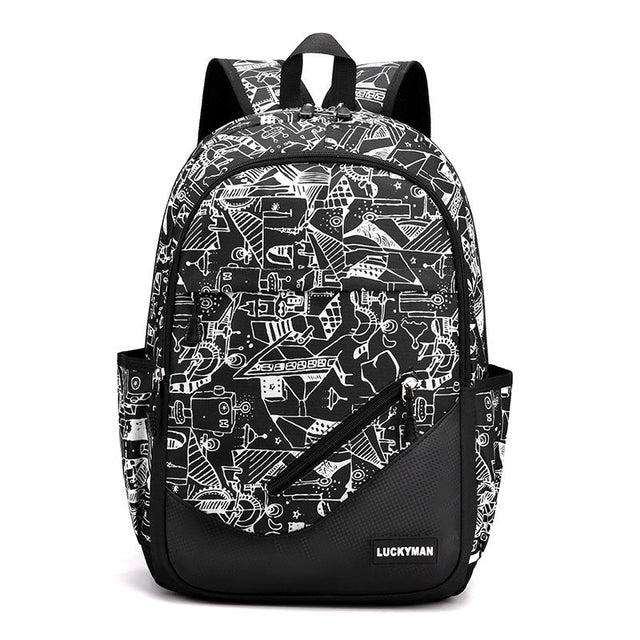 Suchen Sie einen eleganten und praktischen Rucksack für Ihr Studentenleben? Suchen Sie nicht weiter - unser schwarz-weißer geometrischer Rucksack ist mit Ihren Bedürfnissen im Blick entworfen. Mit seinen mehreren Aufbewahrungsfächern, elegantem Design und großzügigem Fassungsvermögen wird er Ihr idealer Begleiter für ein organisiertes und effizientes Studentenleben sein.