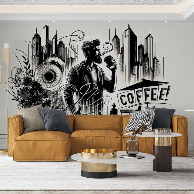Urban Coffee Tapete | Schwarz-Weiß Street Art Design