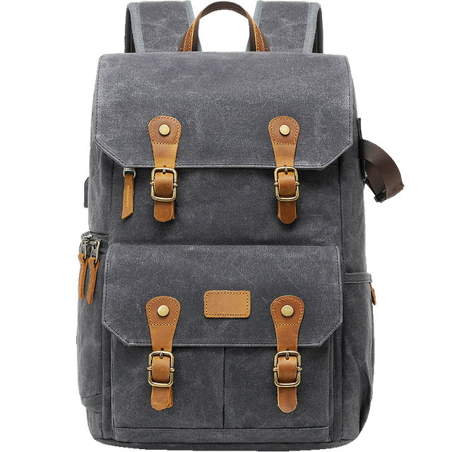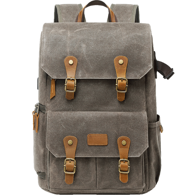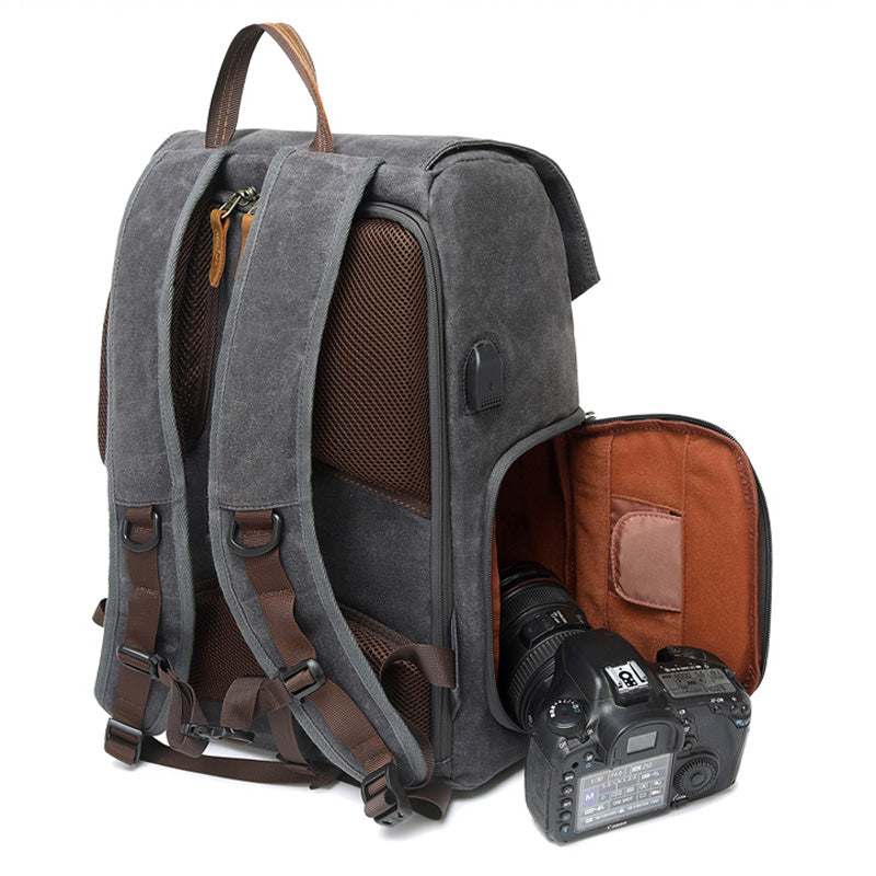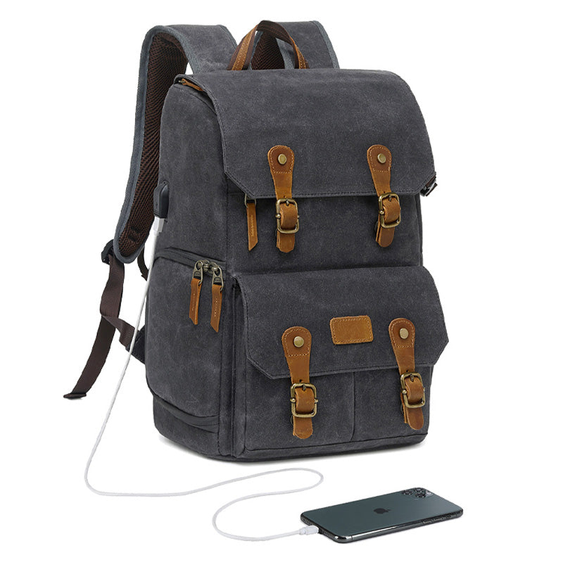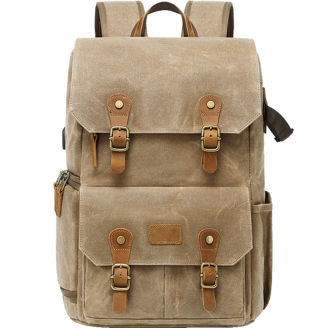 Vintage Kamera Rucksack | Canvas & Leder USB Reisetasche
