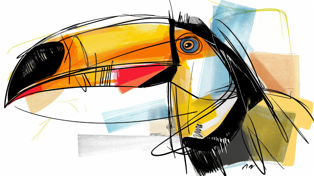 Dieses abstrakte Tukan-Wandbild schafft einen atemberaubenden Blickfang in jedem Raum.