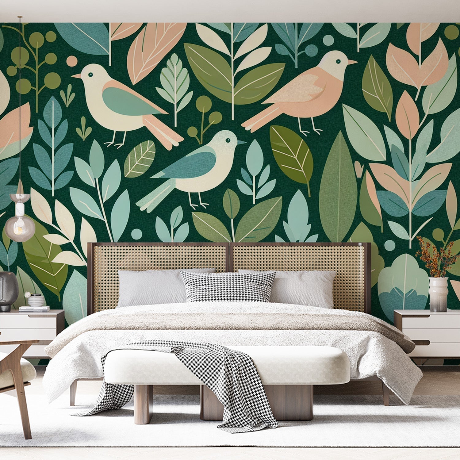 Dieses Vogel-Tapetendesign bringt frische Energie an Ihre Wände.