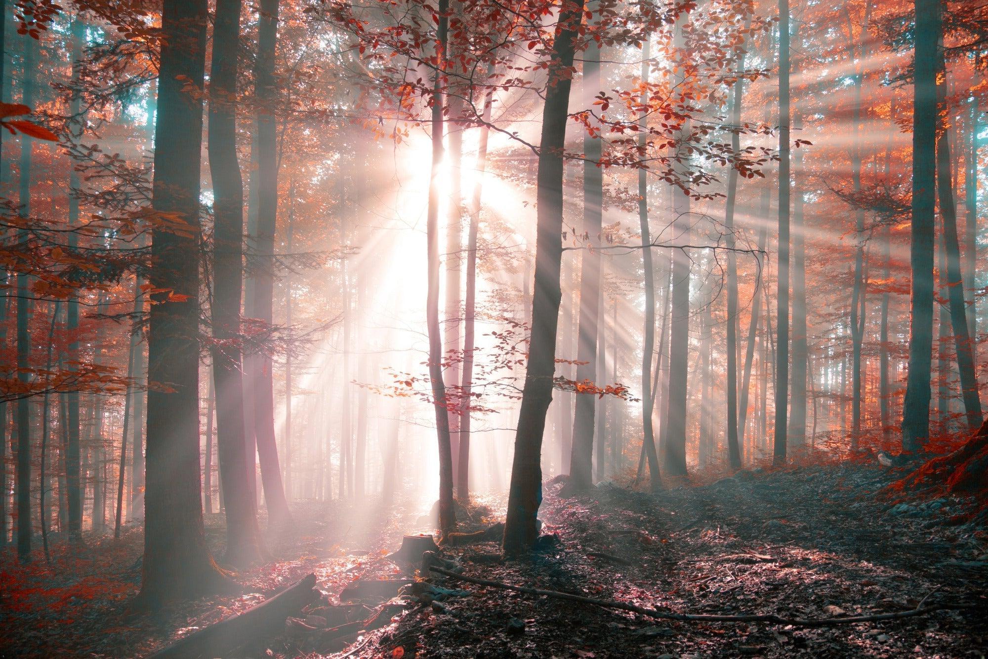 Dieses Waldwandbild lässt Sie die Magie des Morgens erleben.