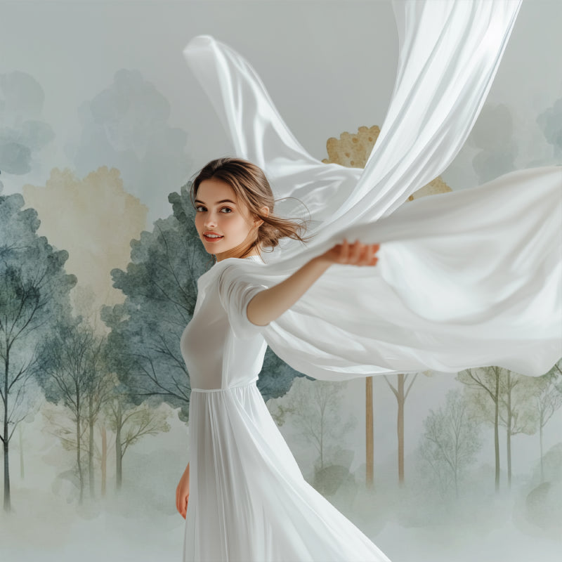 Verwandeln Sie Ihren Raum mit dieser nebligen Waldtapete, die jedem Interieur Tiefe und Ruhe verleiht. Das naturinspirierte Mural schafft ein beruhigendes Refugium, perfekt für Esszimmer, Wohnbereiche oder Schlafzimmer, wo die verträumte Waldszene zur Besinnung und zum Frieden einlädt. Die subtilen Farbvariationen und die künstlerische Darstellung der Bäume bringen die Ruhe der Natur ins Innere und bewahren dabei eine raffinierte, zeitgenössische Ästhetik.
