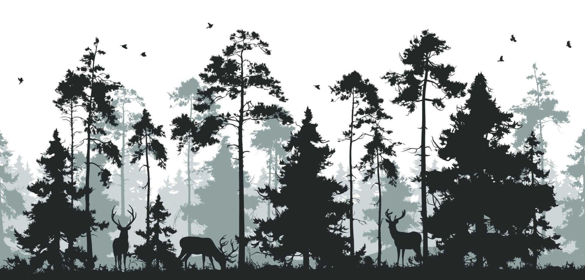 Wald Tapete | Nordische Kiefern mit Hirsch-Silhouetten