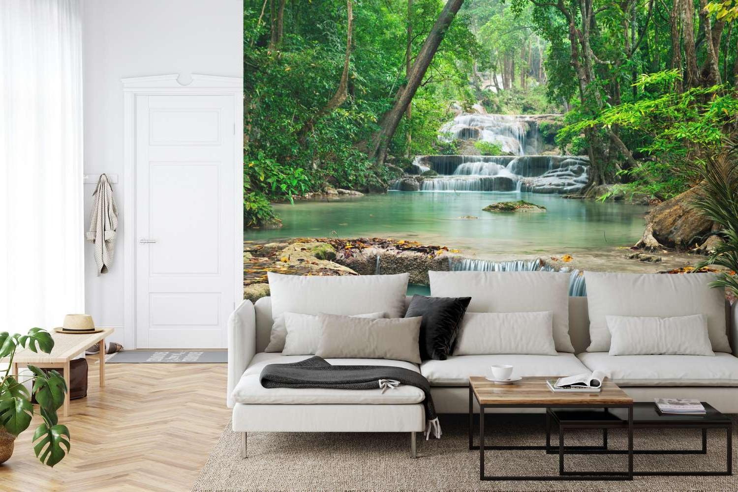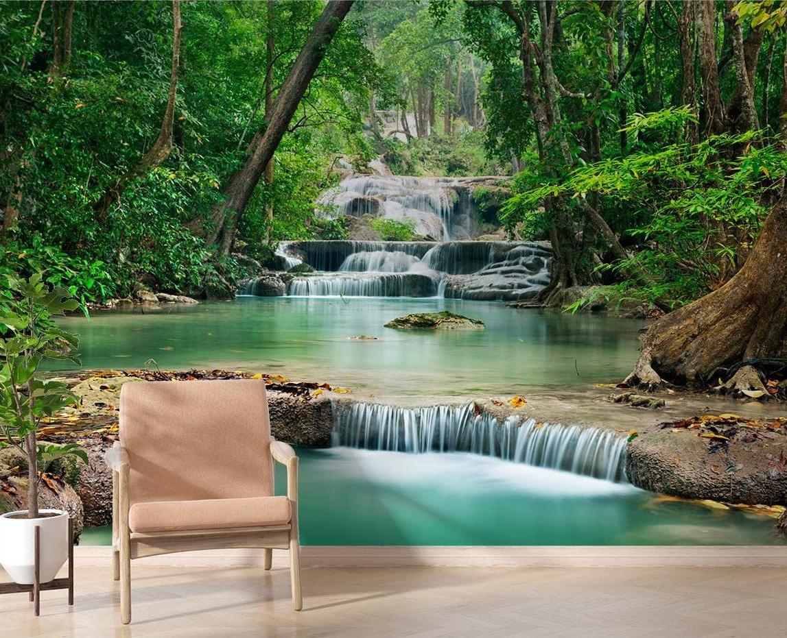 Dieses Waldwasserfall-Wandbild verwandelt schlichte Wände in Fenster zum Paradies.