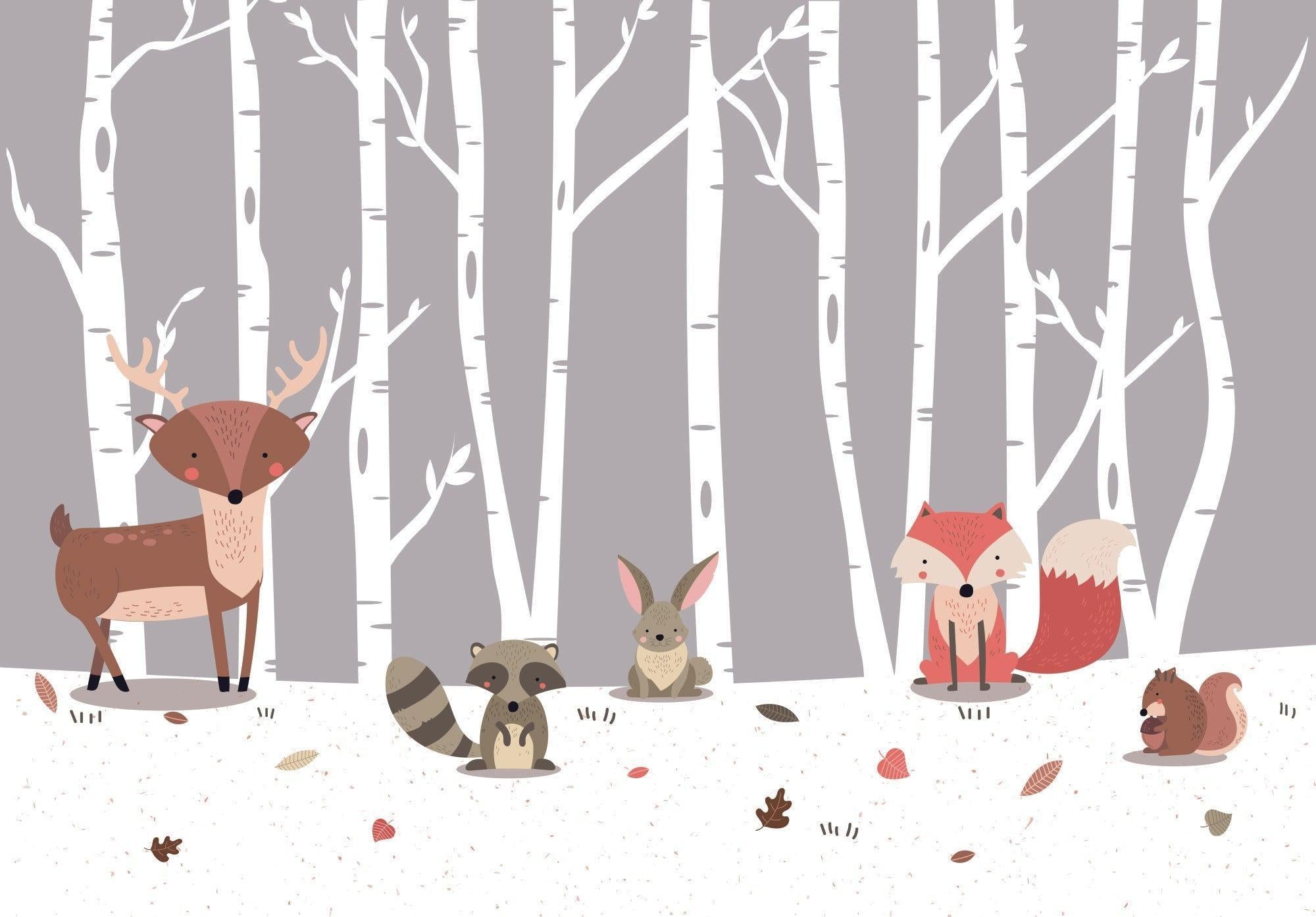 Waldtiere Tapete | Waldtiere in der Birkenhain