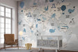 Diese bezaubernde Weltkarten-Tapete schafft eine reizvolle lehrreiche Reise über die Kontinente mit ihrer sanften Blau- und Cremetönung. Geschmückt mit charmanten Illustrationen, darunter verspielte Bären, Wale, Pandas und Meeresbewohner, verfügt das Design über einen erhabenen 3D-Effekt, der den Kontinenten Tiefe verleiht. Vintage-Flugzeuge, Heißluftballons und ein U-Boot fügen verspielte Transportelemente hinzu, während zarte Kiefern und geometrische Akzente dieses Kinder-Weltkarten-Mural vervollständigen.