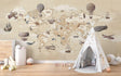 Weltkarte Tapete | Vintage Abenteuer Thema mit Heißluftballons
