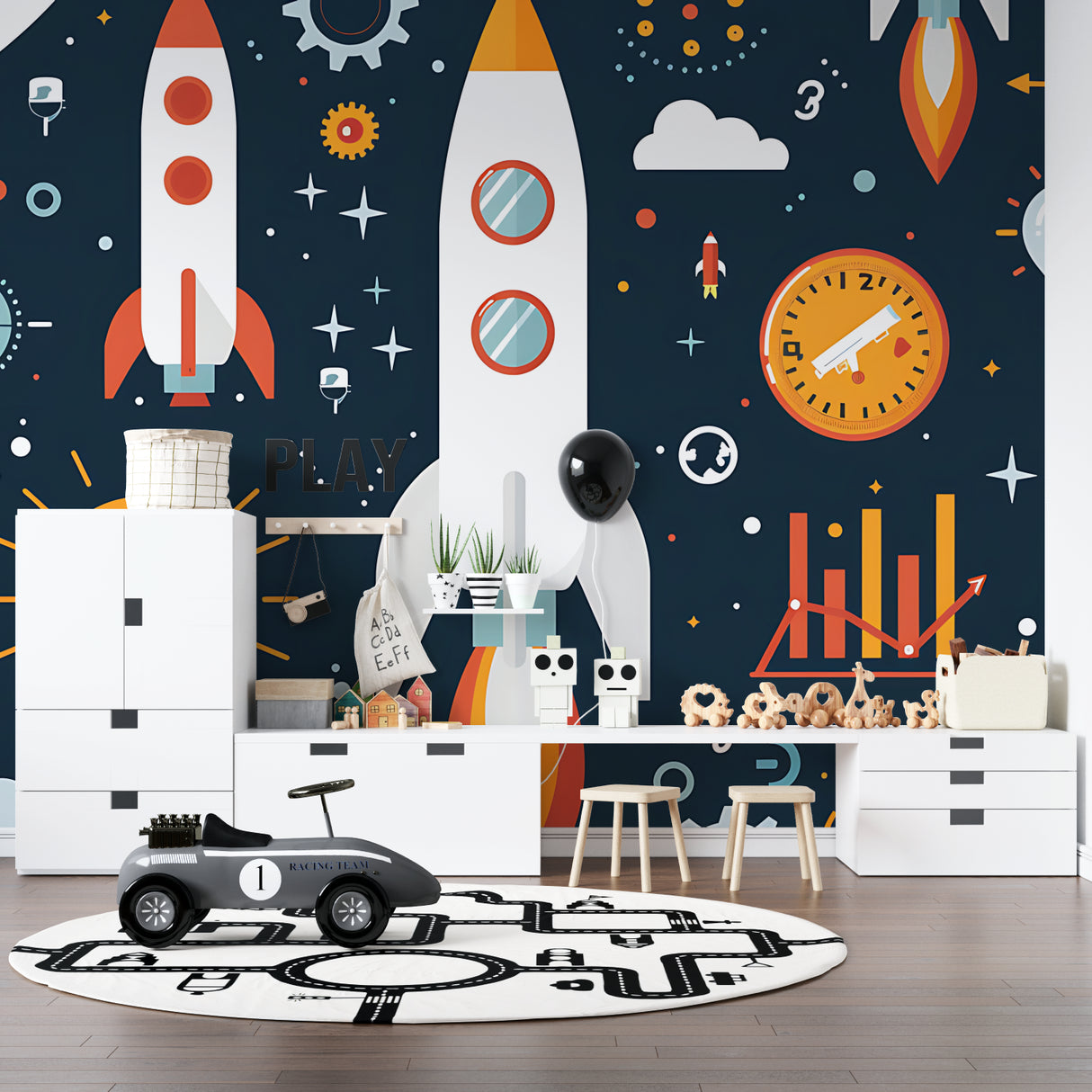 Unsere Raketen-Tapete verwendet moderne Farben, die frisch bleiben.