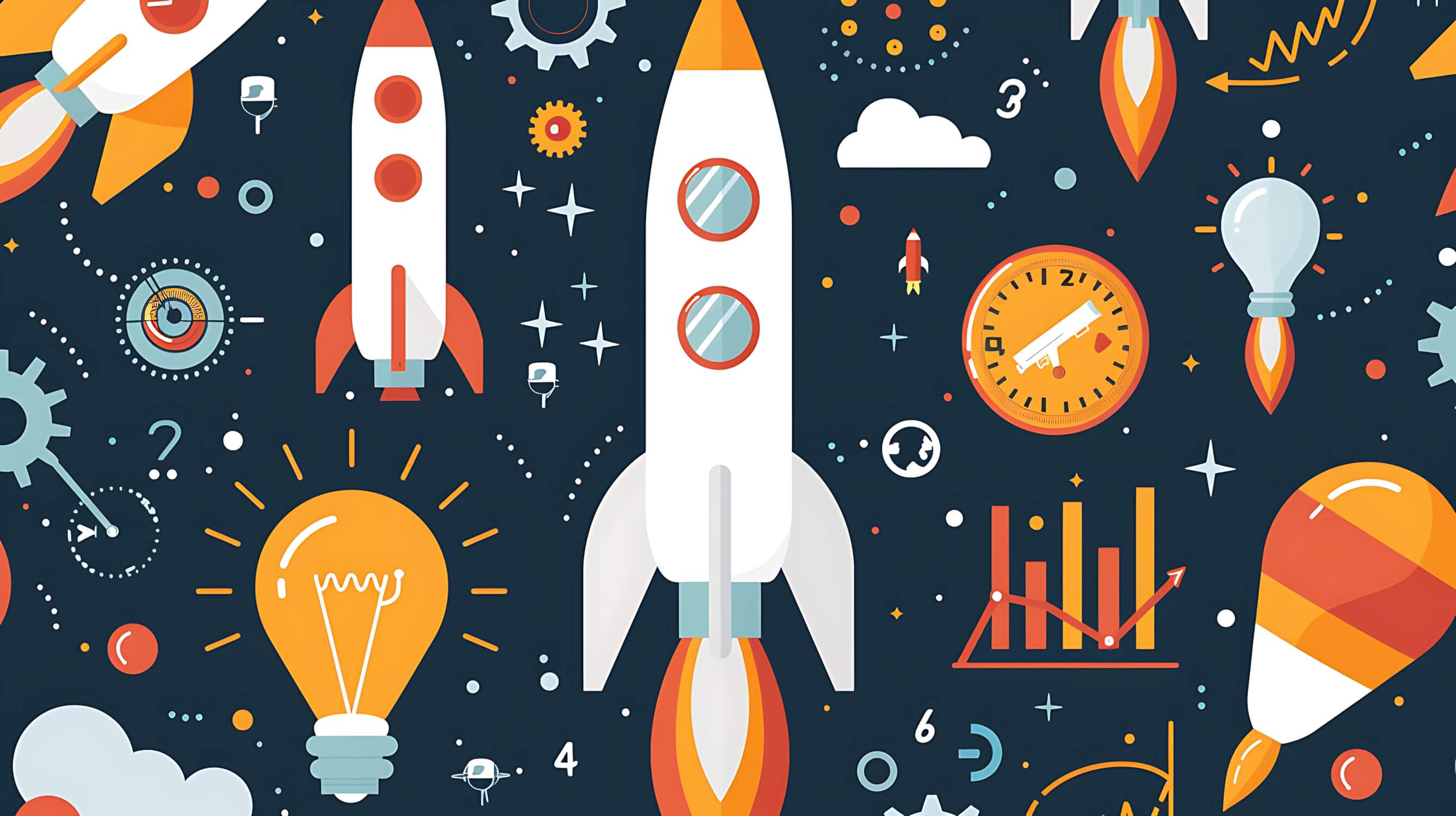 Diese Weltraumraketen-Tapete schafft mit ihrem verspielten und doch anspruchsvollen Design ein bezauberndes Kosmos-Abenteuer. Vor einem tiefen Marinehintergrund schweben weiße Raketen zwischen funkelnden Sternen, während lebendige orangefarbene Akzente und metallische Zahnräder dynamische Energie hinzufügen. Die Astronauten-Tapete zeigt charmante Details wie Wolkenformationen, geometrische Diagramme und himmlische Elemente, die Fantasie und Neugier wecken.