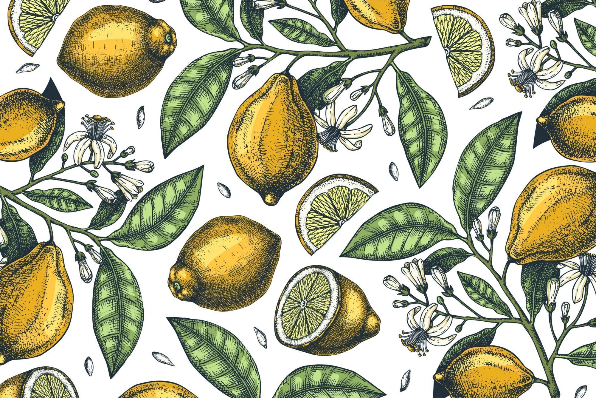 Zitrus Tapete | Vintage Zitronen- und Blütenmuster