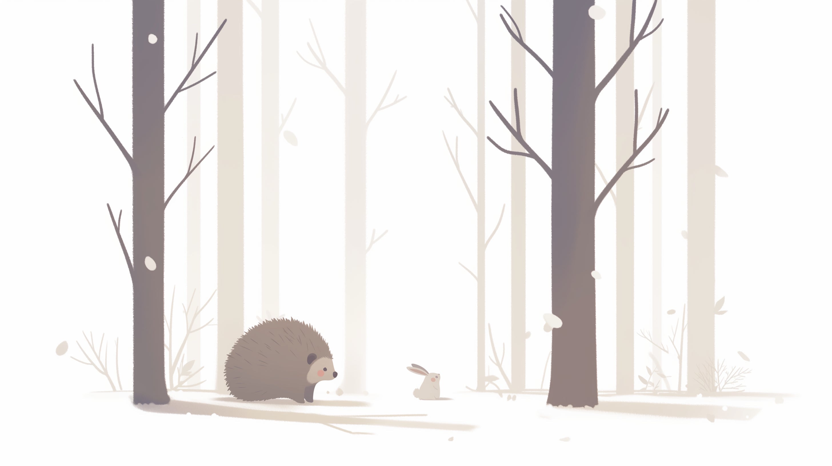 Este encantador papel pintado de animales del bosque da vida a una serena escena invernal del bosque con una suave sofisticación. Situado contra un fondo brumoso de árboles altos en tonos grises, un adorable erizo se encuentra con un pequeño conejo en un delicado claro del bosque. La paleta de colores minimalista de suaves beiges, blancos y grises suaves crea un papel pintado para habitación infantil del bosque que calma y cautiva con su tranquilo encanto.