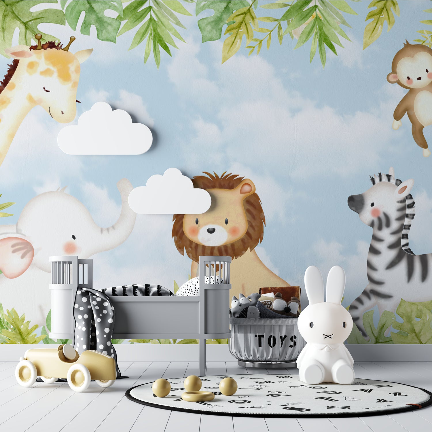 Our safari nursery wallpaper uses kid-safe materials.