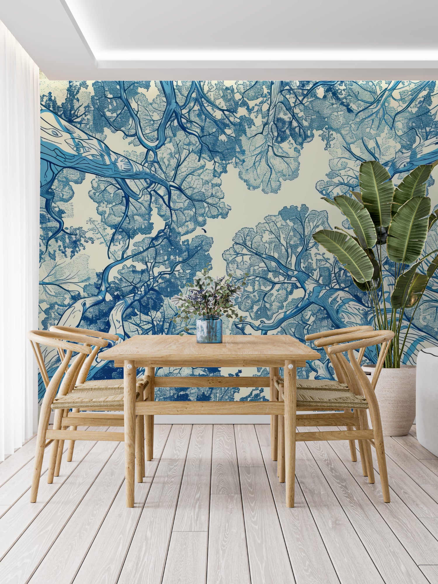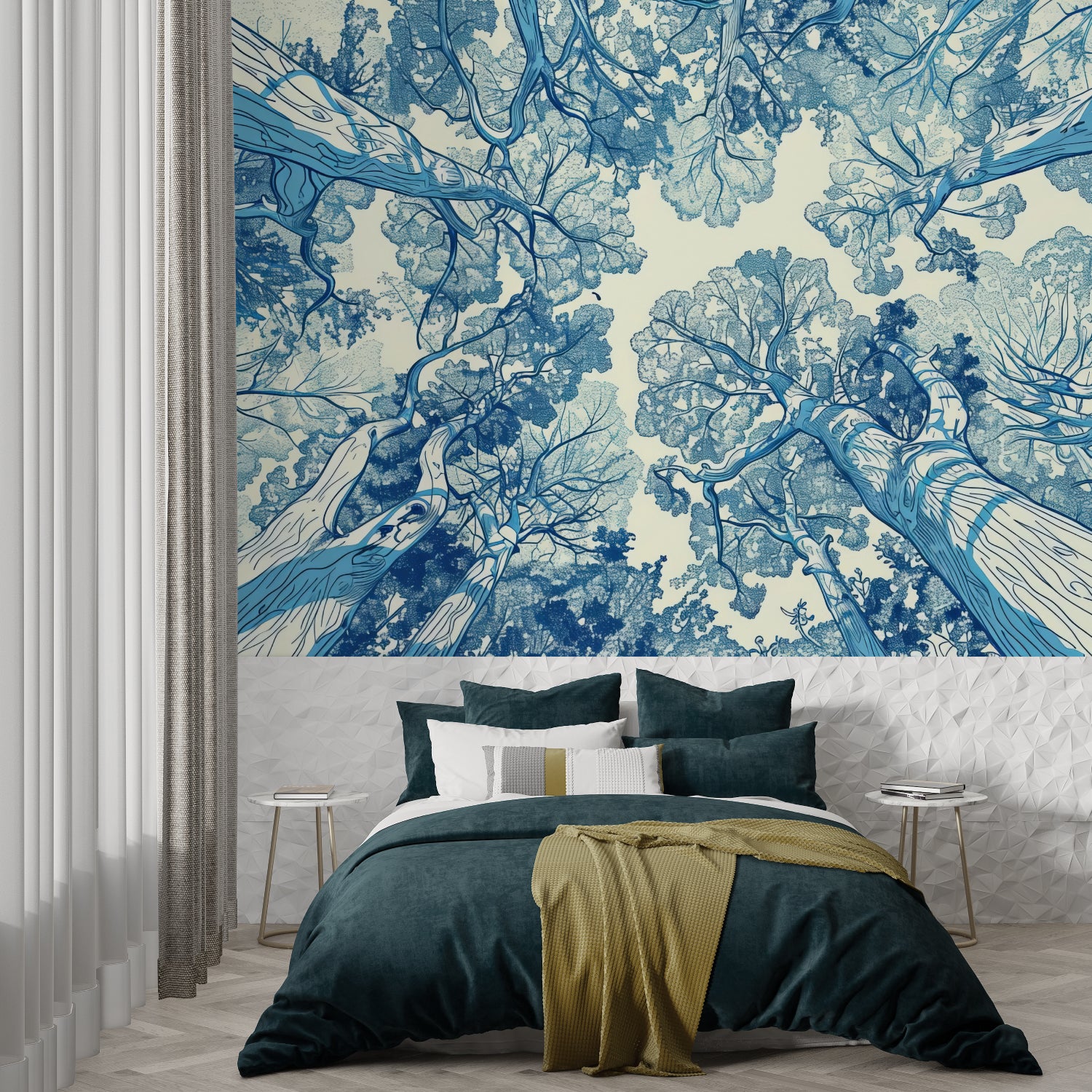 Papel Pintado Mural Dosel de Árbol | Vista Botánica Azul