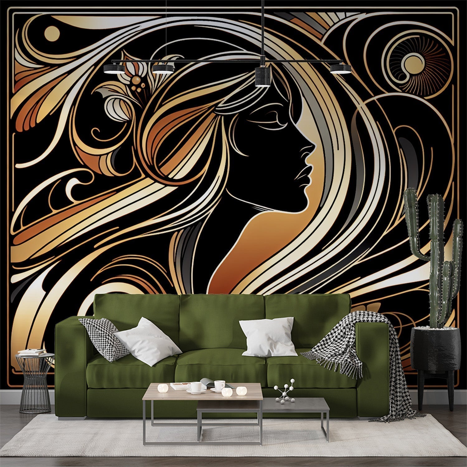 Transforma tu espacio con este mural art nouveau que atrae la atención mientras mantiene un aire de elegancia refinada. El papel pintado abstracto dorado crea un punto focal dramático que funciona maravillosamente en espacios contemporáneos, salones exclusivos o dormitorios sofisticados. Su diseño atemporal aporta una sensación de lujo artístico e interés arquitectónico a cualquier interior, convirtiéndolo en una elección excepcional para quienes buscan crear un espacio de distinción.