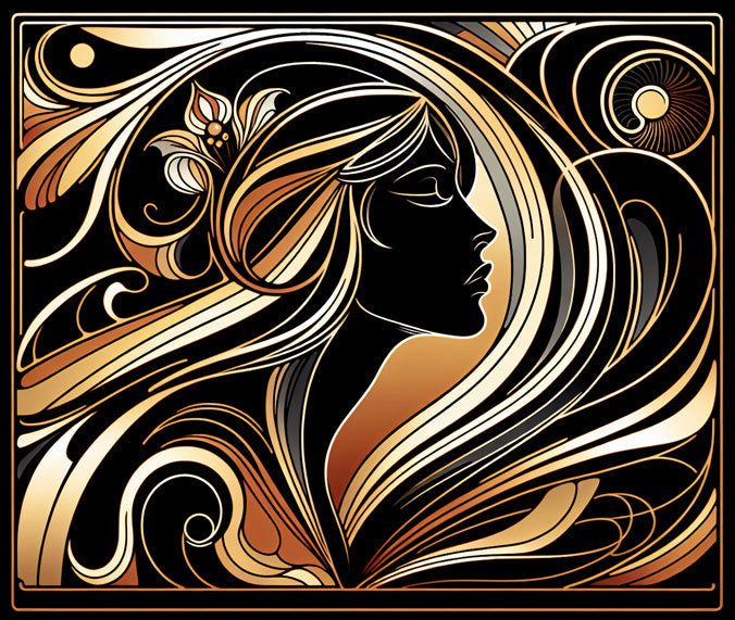 Este papel pintado art déco presenta una silueta elegante representada en tonos lujosos de oro y cobre sobre un fondo negro profundo. Las líneas fluidas crean una composición hipnotizante de curvas y remolinos, encarnando el espíritu sofisticado del movimiento Art Deco. El papel pintado negro y dorado presenta detalles intrincados y motivos orgánicos que bailan sobre la superficie en una mezcla armoniosa de tonos metálicos.