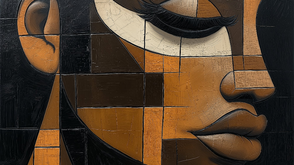 Papel Pintado Mural de Rostro Abstracto | Arte Geométrico en Terracota y Negro