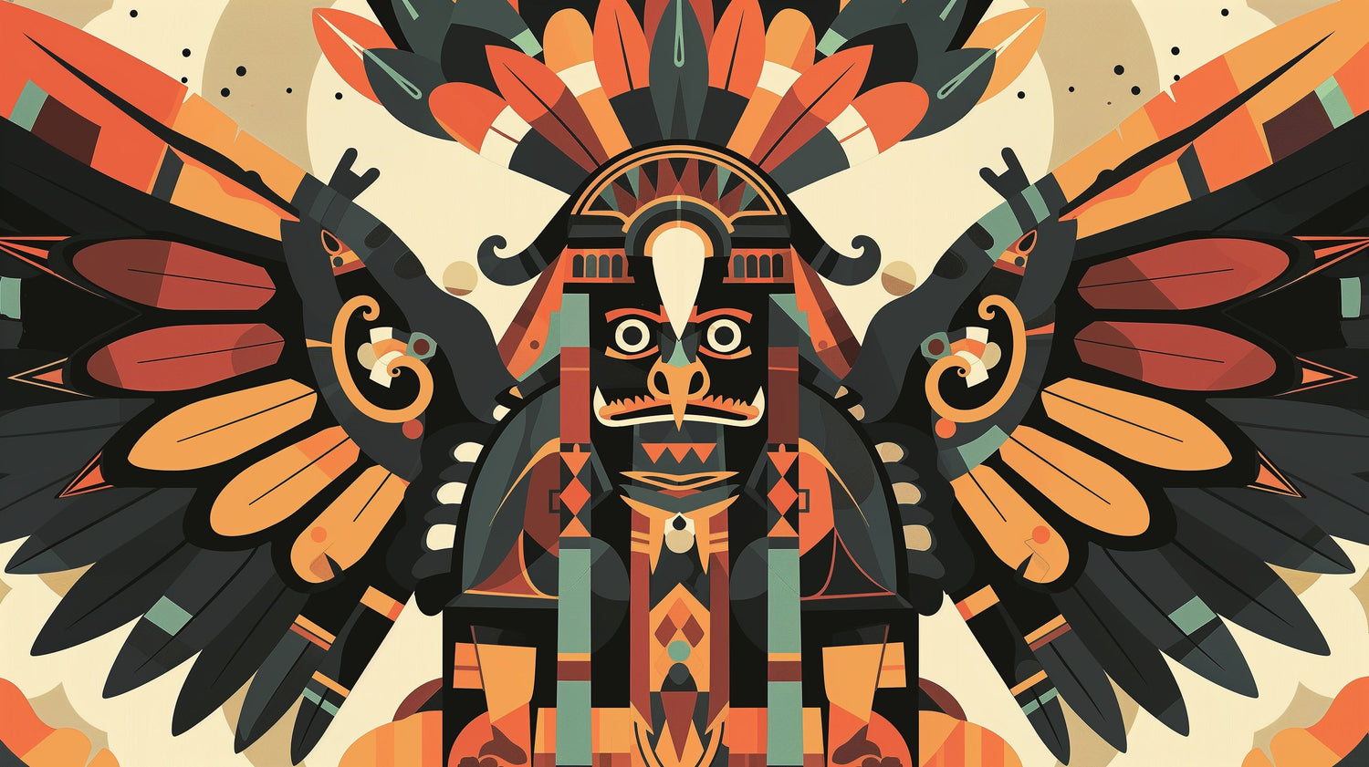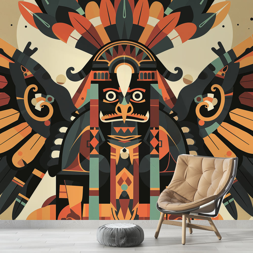 Papel Pintado Mural Azteca | Diseño Geométrico de Deidad Tribal