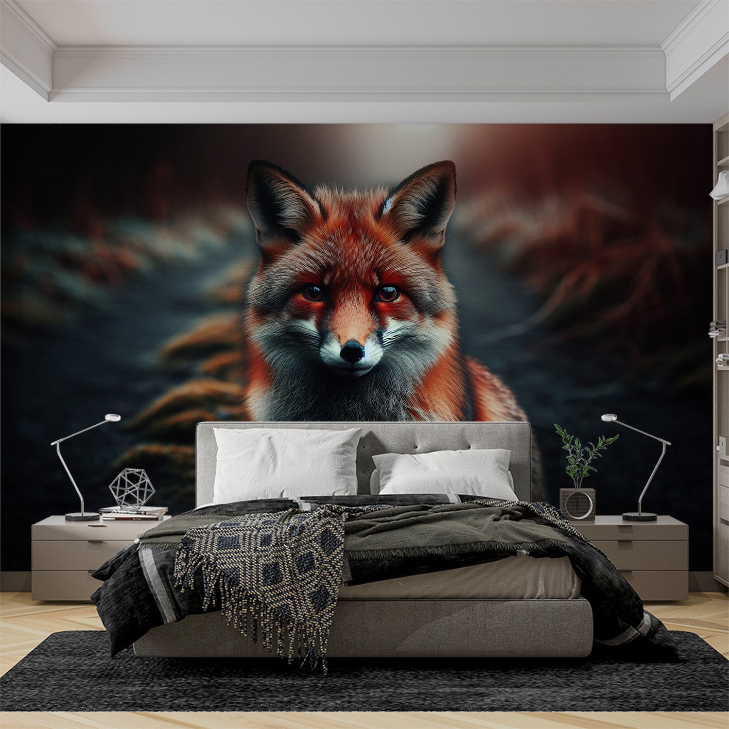 Transforma tu espacio con este papel pintado mural de zorro que trae la belleza indómita de la naturaleza al interior. La composición dramática y la calidad fotográfica profesional hacen de este papel pintado de animal del bosque una elección ideal para crear un punto focal audaz en cualquier habitación. La interacción de luz y sombra añade profundidad y dimensión, convirtiendo tus paredes en una ventana a la naturaleza salvaje que capta la atención mientras mantiene un aire de elegancia sofisticada.