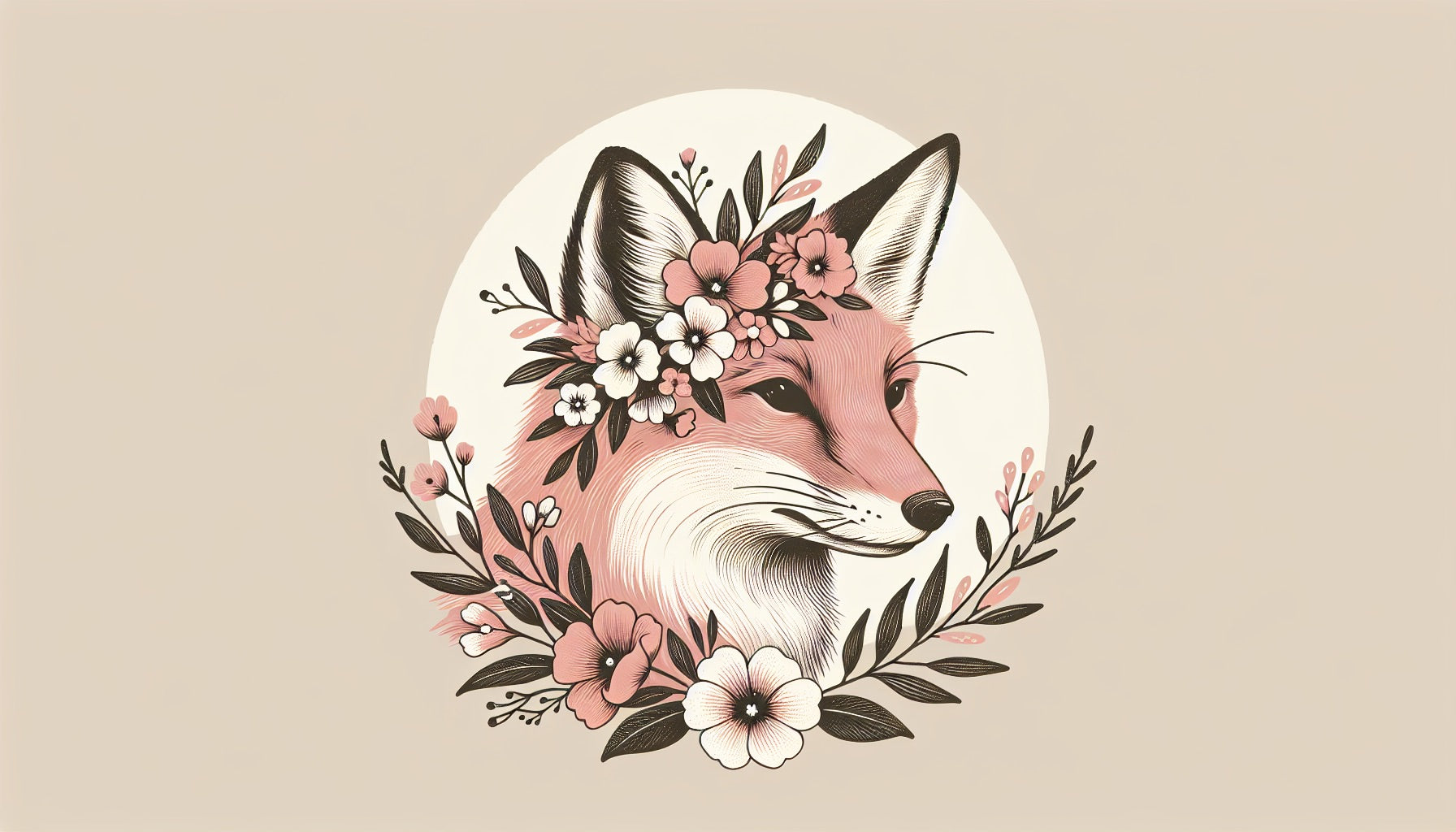 Papel Pintado Mural de Animales del Bosque | Zorro Rosa con Corona Floral