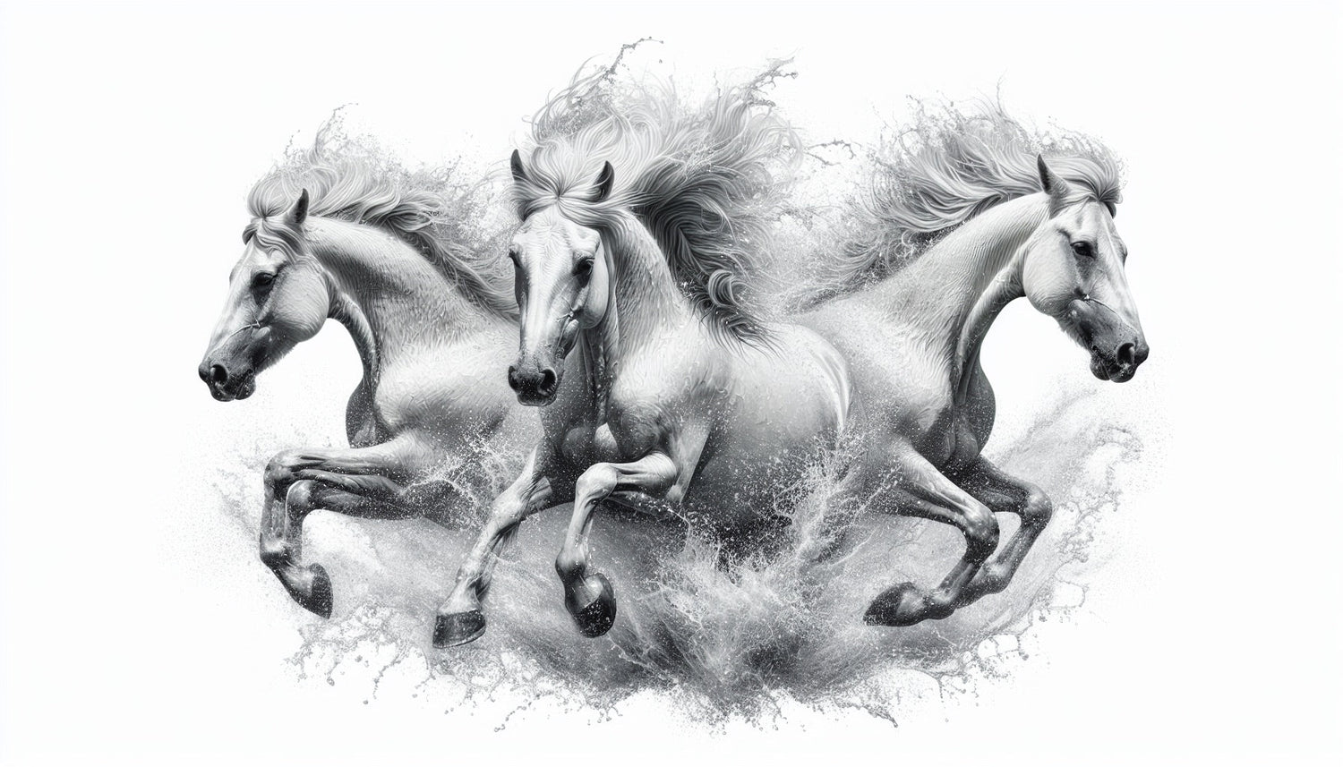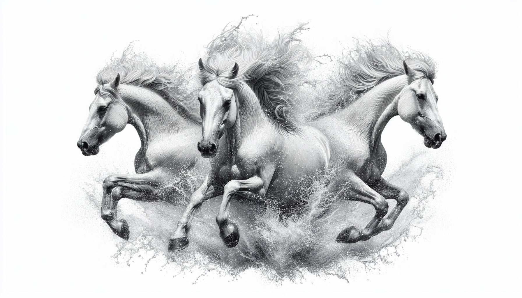 Papel Pintado Mural de Caballos | Trío Dinámico en Blanco y Negro