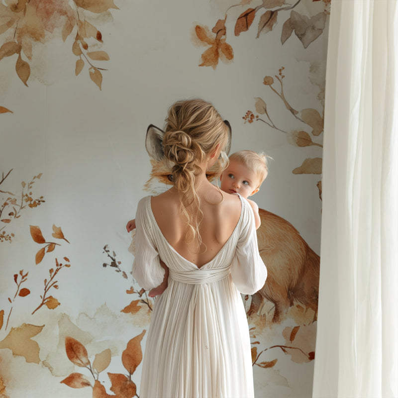 Transforma cualquier espacio en un retiro sereno del bosque con este mural de zorro en acuarela. La paleta de colores suave y el diseño inspirado en la naturaleza lo hacen especialmente adecuado para guarderías y espacios infantiles, aunque su arte sofisticado permite que realce cualquier habitación. Este papel pintado con temática forestal aporta el equilibrio perfecto entre fantasía y elegancia, creando una atmósfera de calma y maravilla que crece con tu hijo.