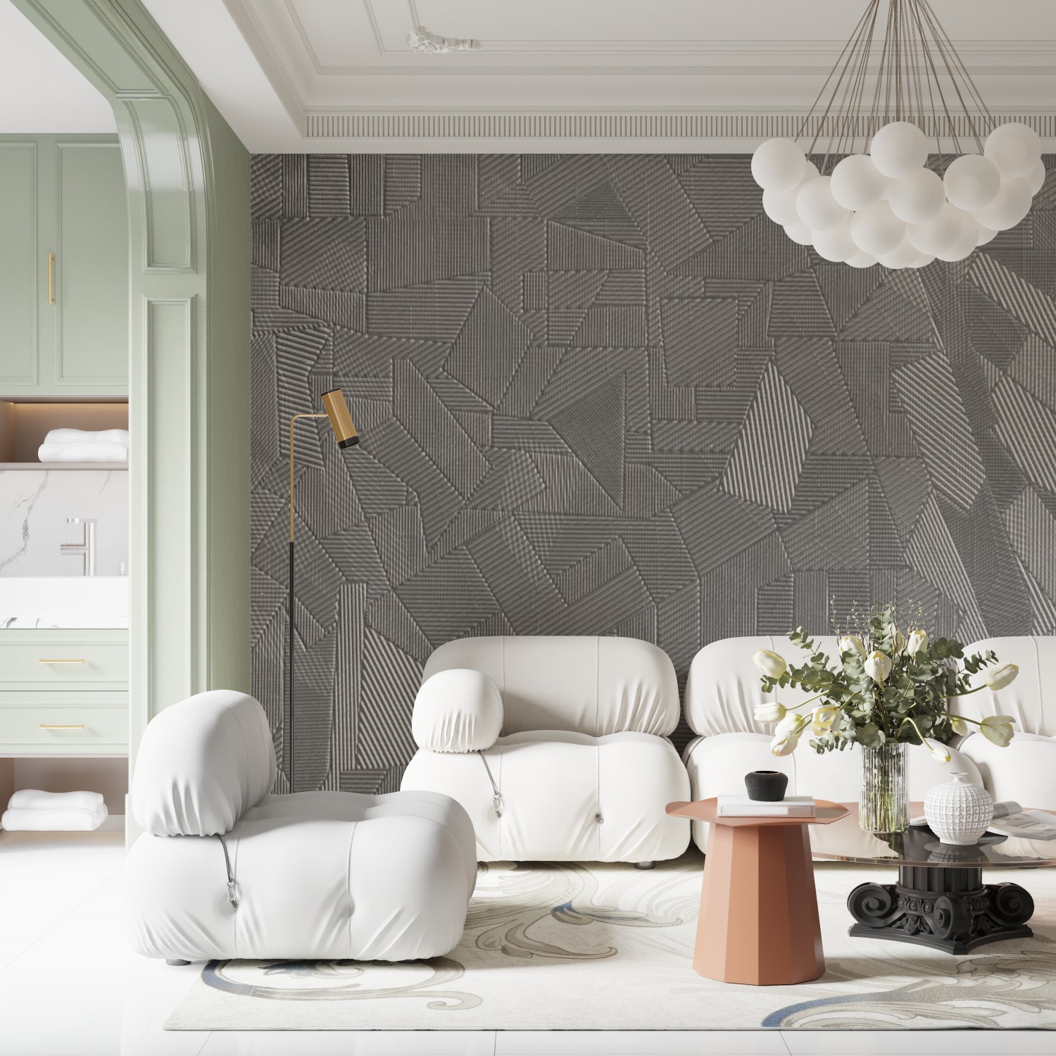 This geometric wallpaper mural transforms spaces with clean lines.