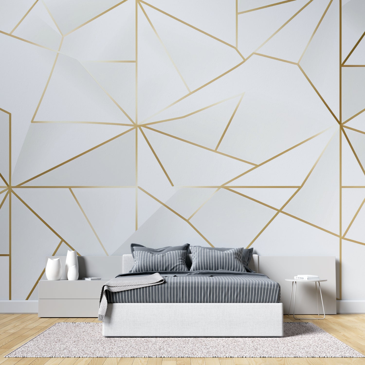 This gold geometric wallpaper adds instant wow-factor to your walls.