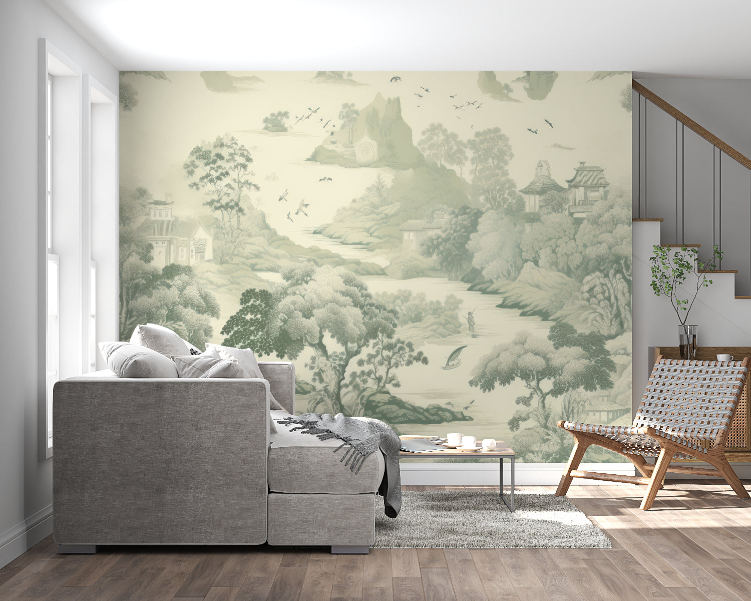Our oriental landscape wallpaper draws the eye naturally through the scene.