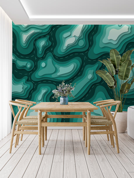 De £22.90£27.90Prix unitaire /IndisponiblePapier Peint Mural Abstrait | Design Topographique Superposé Bleu Sarcelle