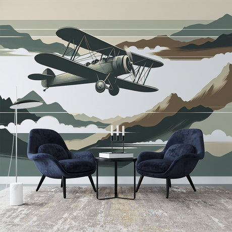 De £28.90£33.90Prix unitaire /IndisponiblePapier Peint Mural Aviation | Biplan Vintage Montagne Forêt
