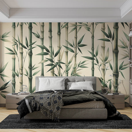 De £28.90£33.90Prix unitaire /IndisponiblePapier Peint Mural Bambou | Design Oriental Vert Sauge et Beige