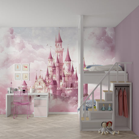 De £28.90£33.90Prix unitaire /IndisponiblePapier Peint Mural Princesse | Château Enchanté avec Licorne Rose