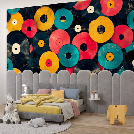 Papier Peint Mural Musique | Design Rétro Disques Vinyles