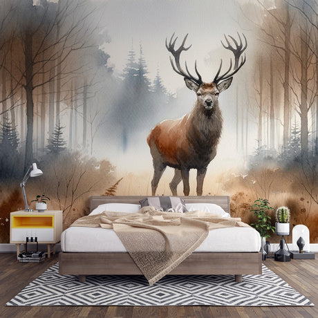 De £28.90£33.90Prix unitaire /IndisponiblePapier Peint Mural Forêt | Cerf Majestueux dans les Bois Brumeux