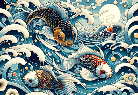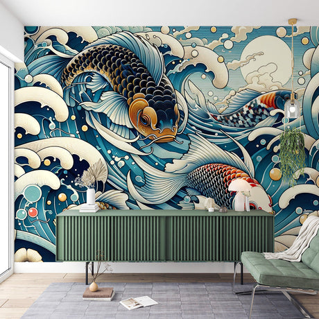 De £28.90£33.90Prix unitaire /IndisponiblePapier Peint Mural Japonais | Poisson Koi dans les Vagues de l'Océan