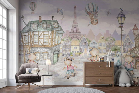 De £28.90£33.90Prix unitaire /IndisponiblePapier Peint Mural Enfants Paris | Aventure Fantaisiste avec des Ours en Peluche