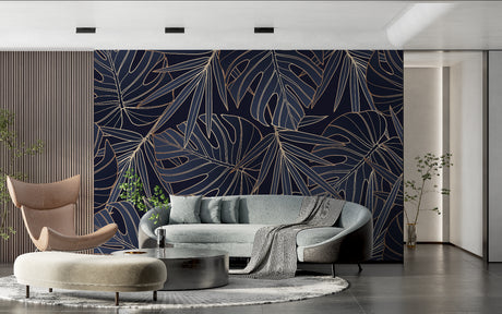 De £28.90£33.90Prix unitaire /IndisponiblePapier Peint Mural Monstera | Bleu Marine et Art Linéaire Doré